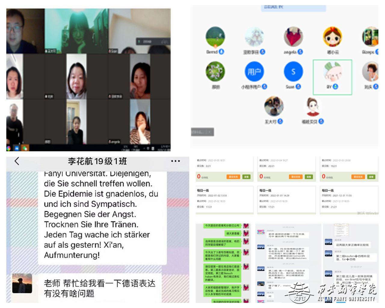 2019级本科《高级德语I》任课教师白莹老师采取在班级开展德语经典文章朗读自主打卡,程度较差的同学可以朗读课文,学有余力的同学可以朗读扩展内容,也可以将朗读和经典阅读结合起来,教师每天给出阅读片段及指导,员工有针对性地开展朗读或背诵活动。