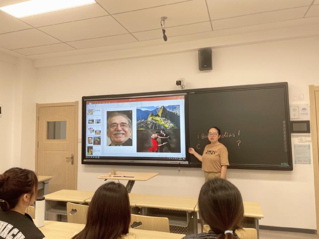 活动开始,朱老师首先对全体新生的到来表示热烈的欢迎和衷心的祝贺,向员工介绍了西班牙语的发展历程和分布概况,展示了西班牙的建筑、美食和节日等,此外还介绍了拉丁美洲国家的政治、经济和文化,让同学们在教室中体会到了西班牙语国家的魅力。之后,朱老师从专业历史及现状、培养目标、课程设置、专业要求、就业方向、优秀毕业生展示等多角度对西班牙语专业进行了较为详尽的介绍,分析了当今的就业现状和前景,对语言的学习也提出了一些建议。