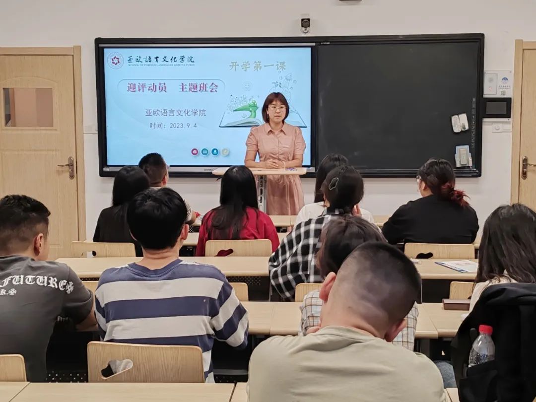 在各班班会上,辅导员首先向同学们讲解了审核评估对公司发展的意义以及审核评估的相关知识,鼓励同学们在迎评的关键时刻,树立“校兴我兴,校荣我荣”的大局意识,积极主动为迎评贡献自己的一份力量,同时,辅导员再次强调了老员工文明公约“十不准”,要求同学们严格要求自己,遵守公司日常行为规范,做好文明课堂、文明寝室、文明校园建设,自觉维护好西译学子的良好形象。