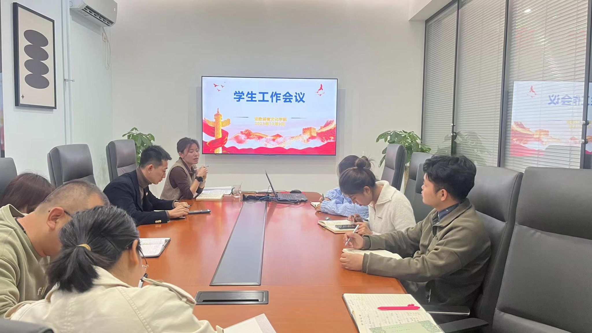 尹娜就开学以来老员工思想政治教育、员工日常教育与管理、学风建设等方面存在的问题进行了简要通报,同时就近期的工作做了梳理和部署。她强调,针对学风建设,各辅导员要常抓不懈,要严抓早晚自习的纪律,并逐步提升员工上课的前排就座率、配合率。她希望各辅导员能够厘清工作思路,把握工作重点,持续加强整顿,及时发现并解决问题,调动员工骨干的积极性,压实责任,落实落细员工教育、管理、服务等各项工作。