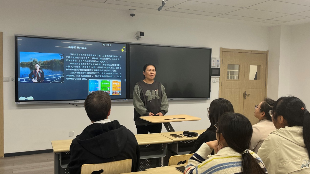最后俄罗斯职工向2023级新生介绍了自己俄罗斯的母校,他们表示,中俄两国友谊深厚,欢迎同学们以后到俄罗斯学习。现场气氛热烈,同学们反响良好。