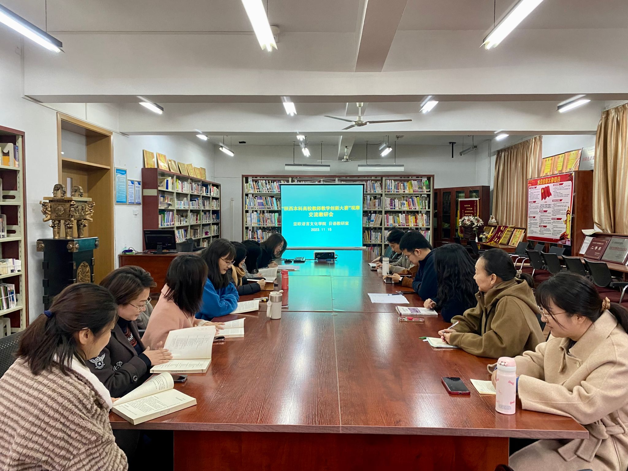第五届陕西本科高校教师教学创新大赛决赛于11月11日至12日举行,直播共分九组。球友会组织全体教师线上观摩,重点观摩了课程思政组和新文科组的比赛。 11月15日下午,球友会就此次教学观摩组织召开了分享交流会。
