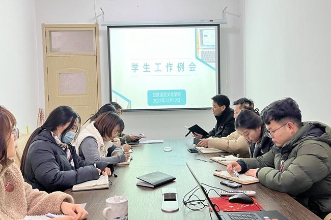 为顺利开展期末工作,12月12日下午,公司召开员工工作例会。亚欧语言文化公司党委书记、副经理宇文永康,学工办主任尹娜,团总支书记陈福礼及全体辅导员参会。