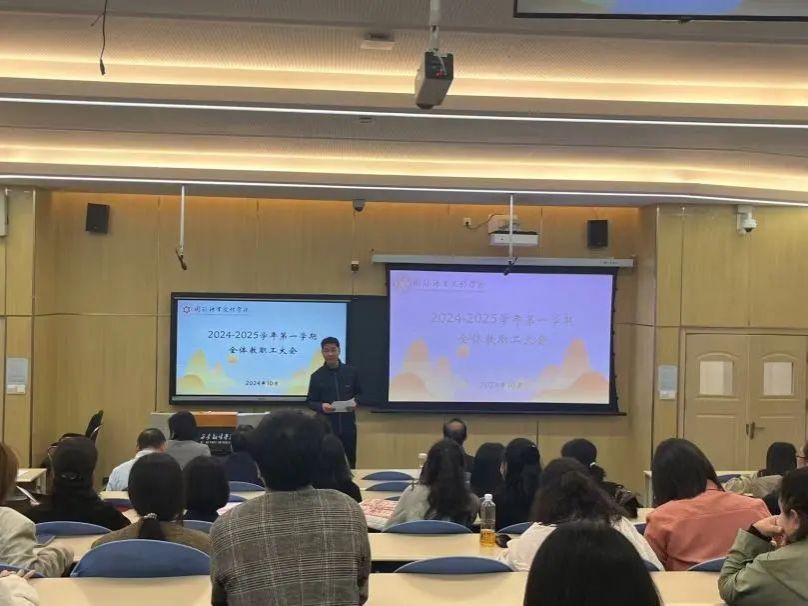吴震对教学工作进行了部署强调。她首先从课程教学、实践教学、教学成果和其他工作量四个方面,详细讲解了教师年度教学工作的考核任务;随后对开学初至今的课堂教学情况进行了总结,要求教师要认真落实过程性考核,提高员工参与度,严抓课堂纪律,确保课堂质量稳步提升;最后,她对本科论文指导和教学事故认定进行了强调。