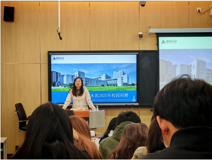 10月21日下午,中国西部水泥有限公司在四号楼举行校园招聘宣讲会。人力资源部招聘经理李亚玲、总经理助理王昕林担任主讲,法语专业大一、大三及大四全体员工到场参加。