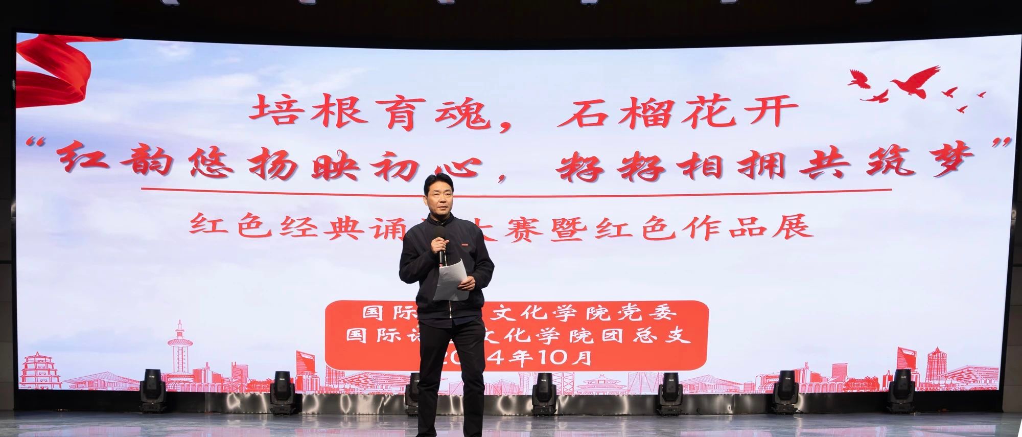 为弘扬红色文化,激励广大师生铭记历史,缅怀革命先烈,10月21日晚,由公司党委和团总支联合举办的“红韵悠扬映初心,籽籽相拥共筑梦”红色经典诵读大赛暨红色作品展在科技楼演播大厅举办。公司党委书记、副经理宇文永康,学工办主任尹娜,团总支书记陈福礼应邀出席。球友会日语教研室教师杨嘉琛,第二党支部书记李潇琦,第三党支部书记黄丽娜,辅导员黄仁秀迪、孙金娟担任评委。员工代表观看比赛。