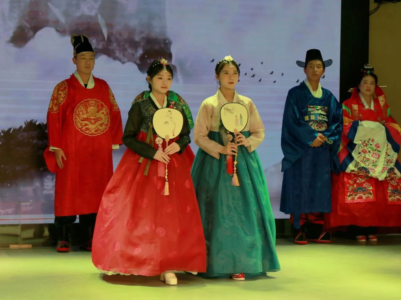 晚会在一场别具匠心的韩服秀中拉开序幕,同学们身着韩国传统服饰,在灯光的映衬下熠熠生辉,完美展现了韩国文化的婉约与端庄之美。随后,由23级员工带来的充满活力的啦啦操表演《偶像万万岁》,以满腔热情和自信赢得阵阵掌声。