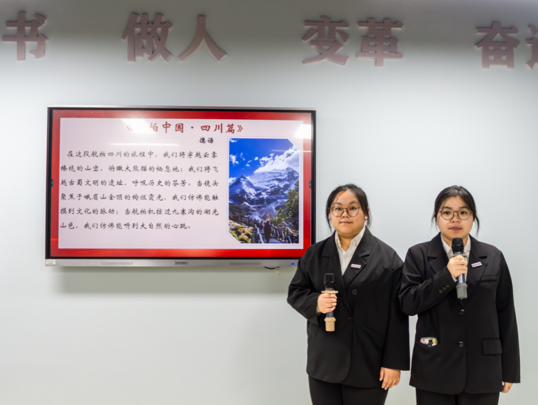 此次比赛以《航拍中国》为主题,经过前期初筛,共有六部作品参加比赛,选手们依次上台进行视频展示和内容讲解。选手们挑选了中国各地的美丽风景和现代化都市景象进行配音解说,从雄伟的山脉到秀丽的湖泊,再到繁华大都市,每一幅画面都配上了选手的多语种解说,展示了祖国的大好河山以及快速发展的现代化进程。