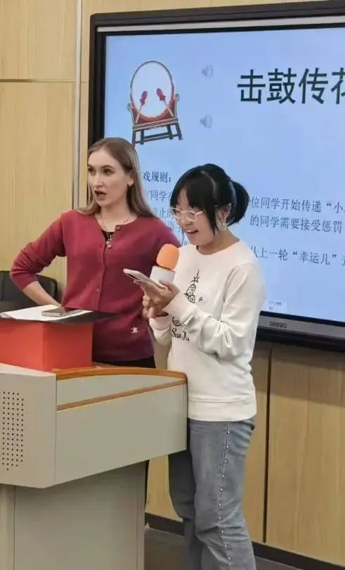本次联欢会由外籍教师达丽娅主持,首先她对俄罗斯职工、俄语兴趣班员工以及俄语专业师生的到来表示了热烈的欢迎,随后强调了举办本次活动的目的,并为大家讲解了游戏规则。