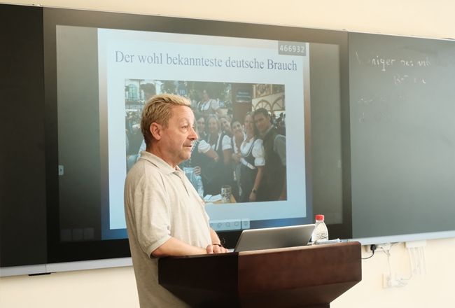6月12日下午,球友会德语系外籍专家Dirk Werner Hartmann在德国文化体验馆为德语系师生作题为“不为人知的德国习俗”主题讲座。