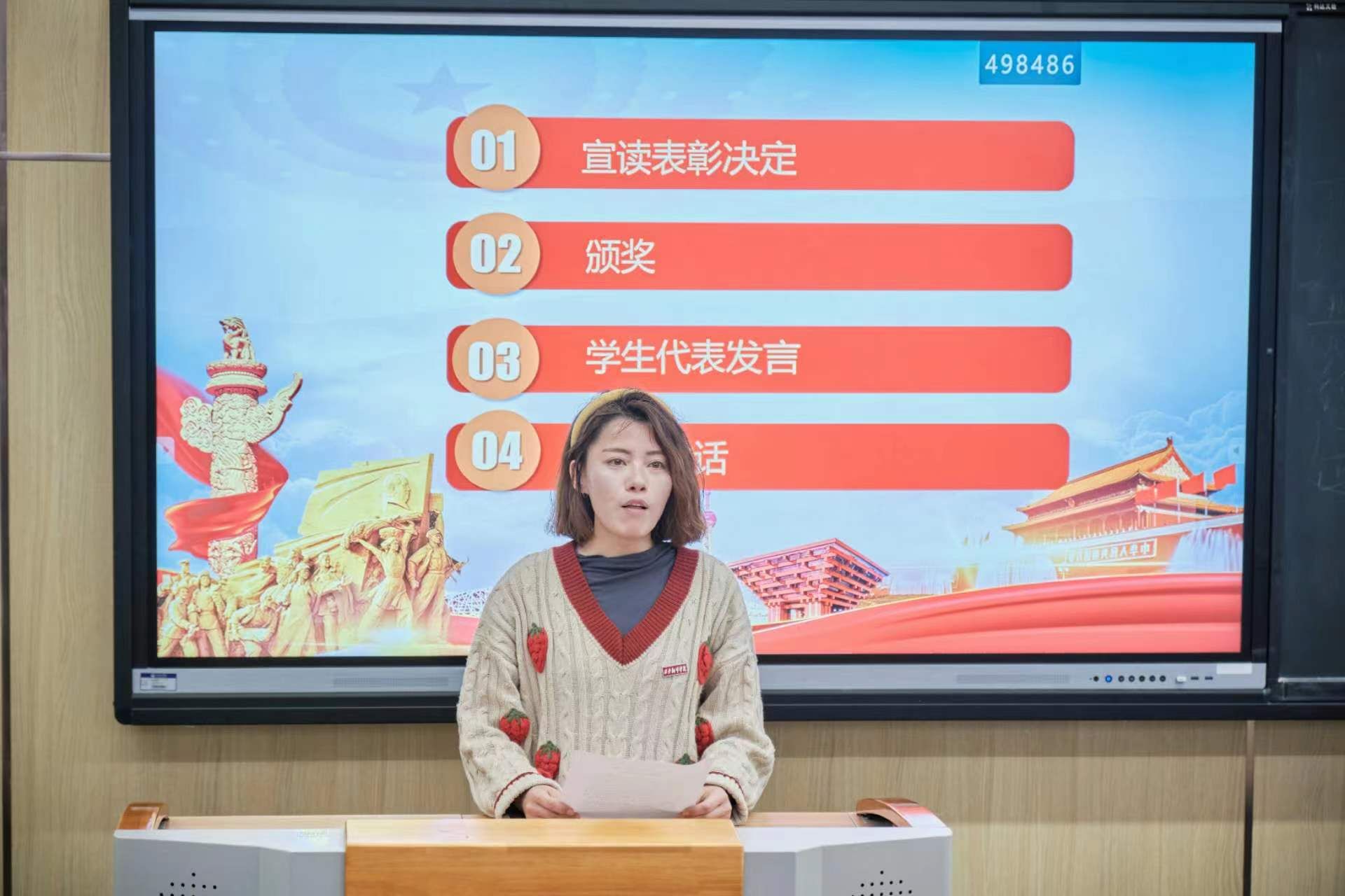 尹娜宣读了《球友会关于表彰2021-2022学年学风建设先进集体和先进个人的决定》,对174名优秀员工及5个先进班集体进行表彰。她号召全体员工向先进看齐,秉承西译“读书、做人、变革、奋进”的校训,不断创新、学习、思考,提升和完善自我。