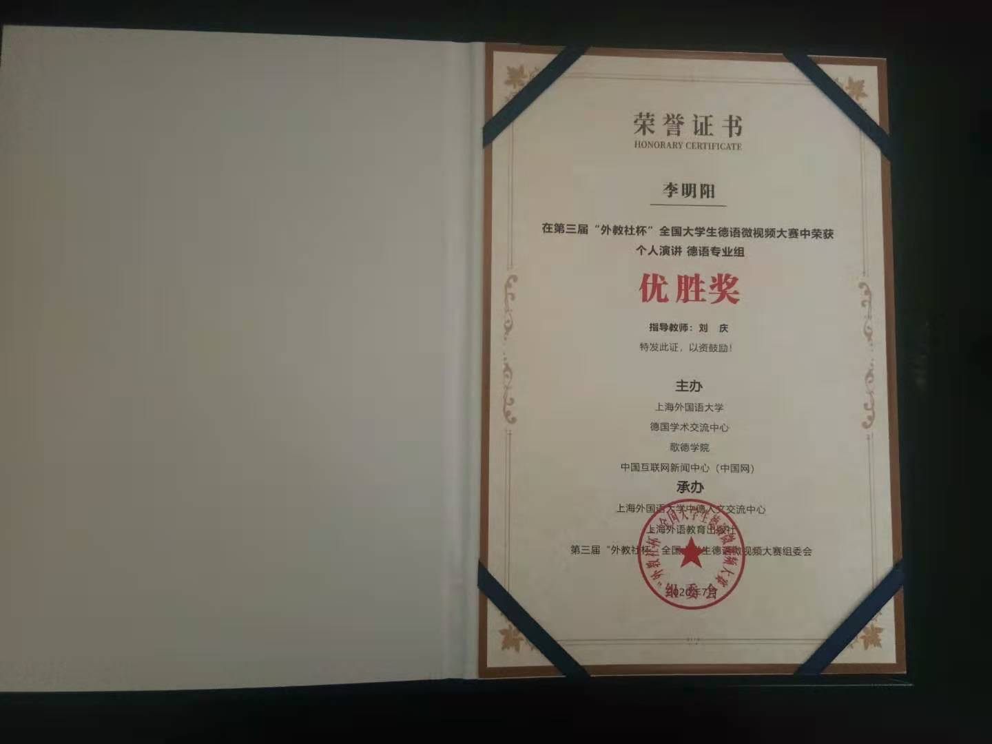 公司球友会积极组织员工参与第三届“外教社杯”老员工德语微视频比赛,其中2018级德语系员工李明阳用德语微视频的形式讲述了中国动漫发展历程,流畅规范的语言,独具匠心的视频呈现使其作品在全国200余优秀作品中脱颖而出,闯入决赛,并荣获优胜奖。