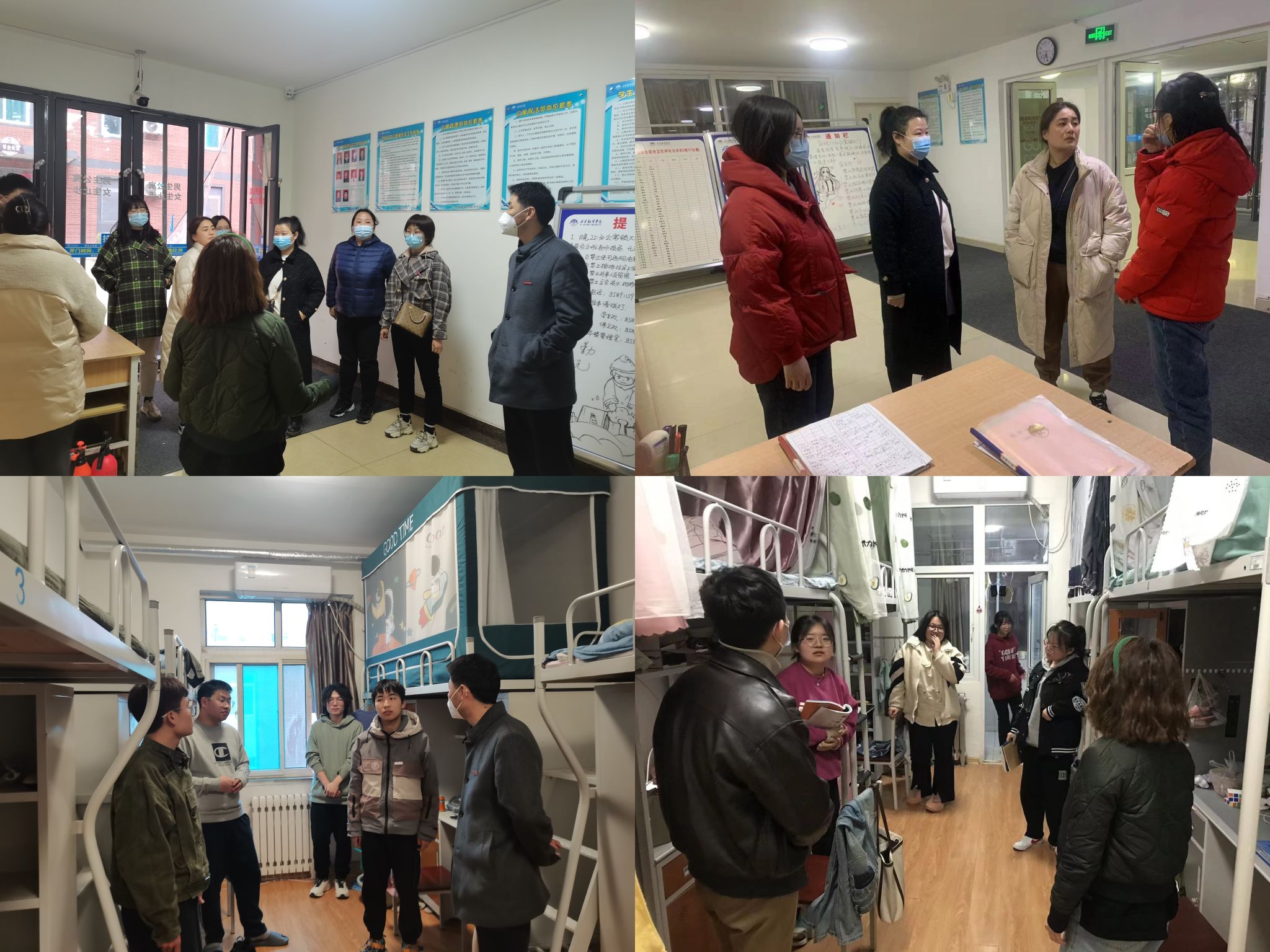 二、检查课堂教学,营造良好学风。为了解员工开学后的学习状态以及课堂教学情况,帮助员工尽快适应新学期的学习节奏,养成良好的学习习惯,宇文永康带领全体学工人员深入课堂检查教学情况,了解员工的出勤、课堂纪律、课堂互动、课堂教学效果等。宇文永康一行仔细检查教室各项设备,要求对于存在问题的设备要及时报修,努力为员工营造良好的学习环境。对于课堂教学中存在的问题,他要求辅导员进一步做好督促,加强与任课老师沟通,积极主动地助力员工学业提升。