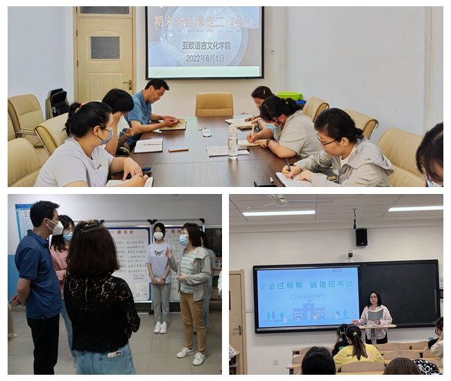 召开主题班会,增强安全意识。辅导员们利用晚自习时间,积极组织“安全过假期 诚信迎考试”主题班会。在端午节假期即将到来之际,辅导员积极引导员工遵守疫情防控要求,做好安全防护,保证个人人身安全、财产安全、交通安全、饮食安全,以健康积极的状态做好期末复习。针对期末的随堂考试、英语四六级考试等,辅导员们引导员工要劳逸结合,调整好作息,合理做好复习计划,自觉遵守考试纪律,做文明诚信的老员工。