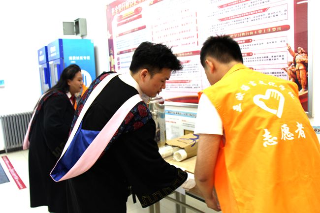 志愿者们身穿整齐的橘色志愿服,热情洋溢、积极主动地为毕业生进行手续办理指引,并专门设置了毕业生打印窗口,为他们打印资料提供便利。期间,志愿者们设立了服务站点,安排轮流值班,保证每个服务站点人员充足、办事高效,及时解决毕业生离校中的问题及困难。志愿者们用自己的行动、微笑、汗水,诠释着公司师生对毕业生的关爱和眷恋。与此同时,公司还提供酸梅汤、开水、橙汁等饮品,在这炎热的夏季,为毕业生们送去一丝清凉。